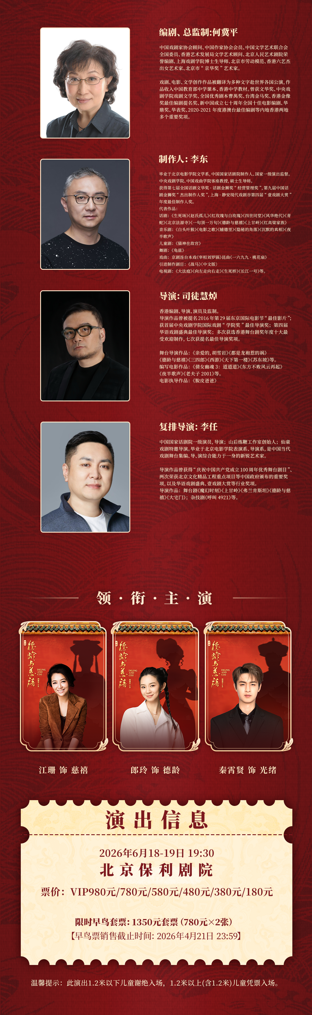 话剧《德龄与慈禧》时间:2026.06.18-06.19场馆:北京市 | 保利剧院 票价:380/480/580/780/980微信订票:18515362586电话订票:010-66552100,010-66552258